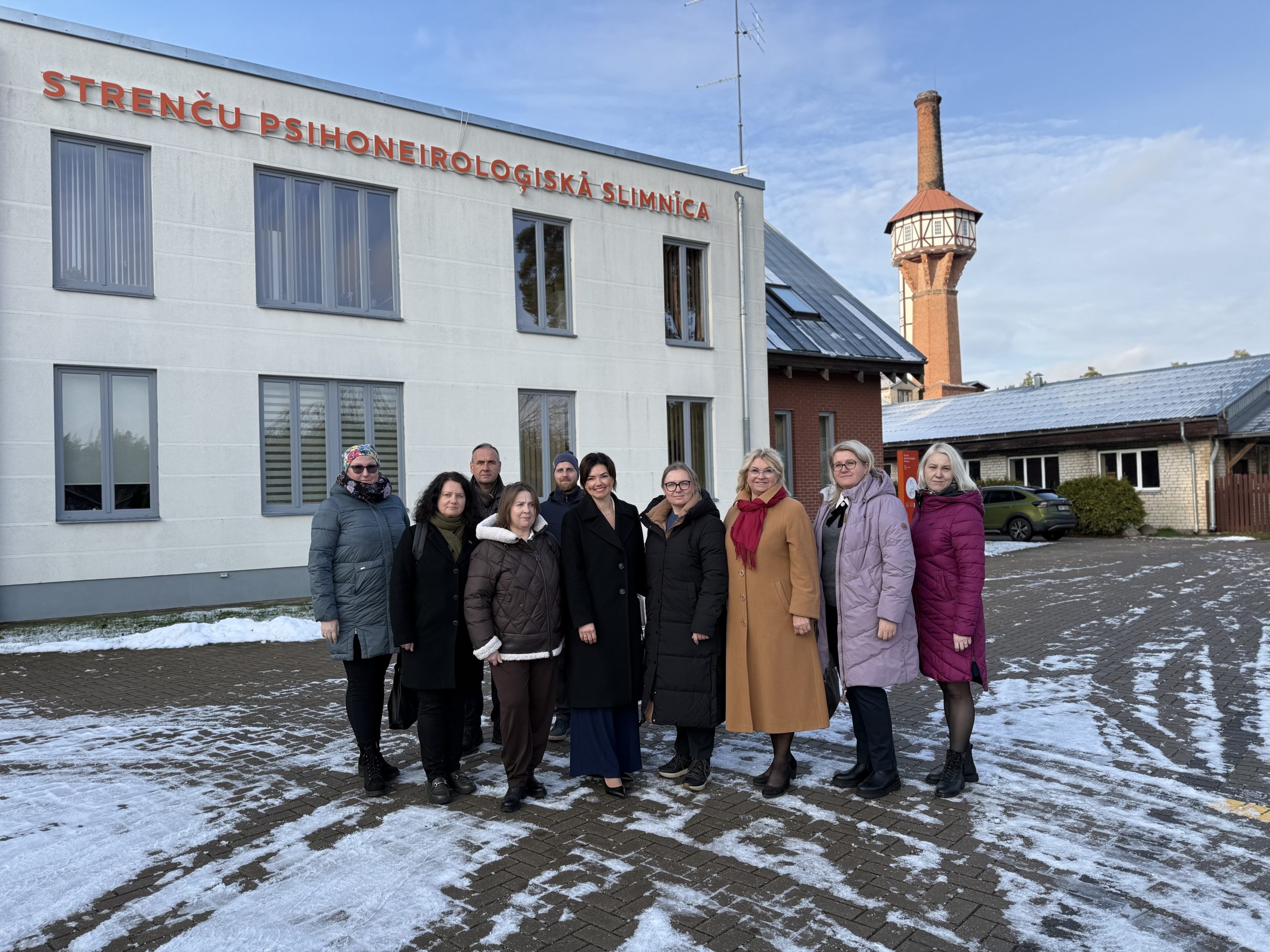 2025. gada 20. novembrī Strenču psihoneiroloģiskajā slimnīcā (turpmāk – Strenču PNS) norisinājās Nacionālā psihiskās veselības centra (NPVC), Veselības ministrijas (VM) un Centrālās finanšu un līgumu aģentūras (CFLA) pārstāvju darba vizīte, kas notika Eiropas Reģionālās attīstības fonda (ERAF) projekta Nr. 4.1.1.1/3/24/I/001 ietvaros.