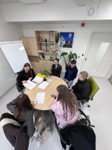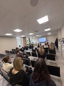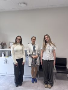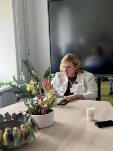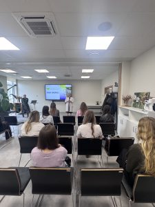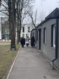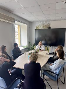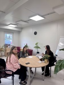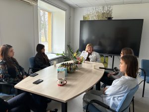 Diena pagāja kustībā – jaunieši sekoja līdzi mūsu kolēģu darbam, uzdeva jautājumus un paši mēģināja saprast, ko nozīmē strādāt psihiskās veselības jomā. Viņi ēnoja mūsu speciālistus – no valdes līdz klīniskajiem profesionāļiem: valdes priekšsēdētāju – psihiatri Dr. Pūci, valdes locekli Andu Krauzi, zinātniskā institūta vadītāju, psihiatri Lieni Sīli, klīnisko psiholoģi Marlēnu Alsteri, virsmāsu Ivetu Amoliņu, mākslas terapeiti Darju Križsku-Popovu, ilgtermiņa farmakoterapijas kabineta virsmāsu Laimdotu Landišu un ergoterapeiti Meldru Kraukli.