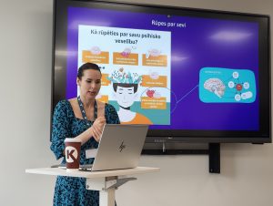 Saruna sākās ar apvaicāšanos par skolēnu viedokli saistībā ar soctīklu pieejamības ierobežošanu jaunākajā vecumā, ko mūsu ārstniecības iestāde atbalsta. Atbalstu saklausījām arī mūsu ciemiņos. Tālāk saruna turpinājās vispirms par to, kas ir psihiski vesels cilvēks, kā tikt galā ar emocijām un stresu, kā veidot psiholoģisku izturību, lai nenonāktu līdz psihiatra palīdzības meklēšanai, kur vislabākie palīgi ir pastaigas mežā, sportiskas aktivitātes un socializēšanās. Atbildēts tika arī uz jautājumiem par psihiatra profesiju, psihiskajām slimībām un jaunākajām metodēm to ārstēšanā. Stāstīts tika par psihi, kas mīl struktūru un paredzamību, un tas, rūpējoties par savu labbūtību, iegūstams no ilgtermiņa, noturīgu, pārbaudītu attiecību veidošanas ar līdzcilvēkiem, ka smadzeņu darbību sekmē rakstīšana un lasīšana, un tās jāsargā no traumām, kas ir visbiežākais organisku, psihisku traucējumu iemesls.