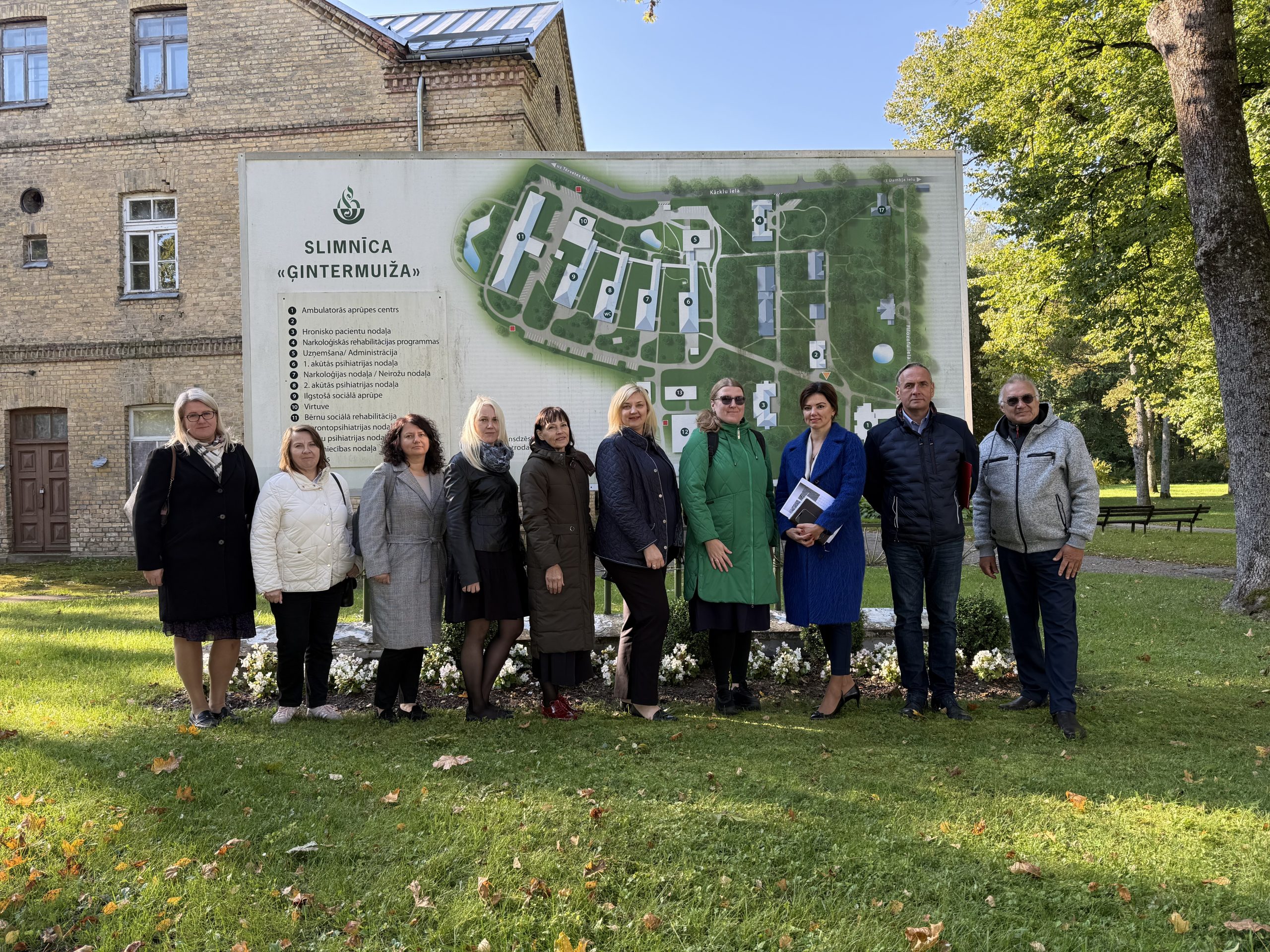 30.09.2025. Nacionālā psihiskās veselības centra (NPVC), Veselības Ministrijas (VM) un Centrālās finanšu un līgumu aģentūras (CFLA) pārstāvji viesojās Slimnīca “Ģintermuiža”, Valsts sabiedrība ar ierobežotu atbildību (turpmāk – Slimnīca “Gintermuiža”) ERAF projekta Nr. 4.1.1.1/3/24/I/001 ietvaros. Vizītes laikā Slimnīcas “Ģintermuiža” pārstāvji informēja par jau veiktajām un plānotajām darbībām ERAF projekta ietvaros, t.sk. par kopējo infrastruktūras attīstību un veiktajiem medicīnas iekārtu un inventāra iepirkumiem. Slimnīcas pārstāvji sniedza arī detalizētu pārskatu par jau piesaistītajām investīcijām arī iepriekšējos plānošanas periodos, iekļaujot informāciju gan par ES Struktūrfondiem, gan par citiem projektu finansēšanas avotiem.