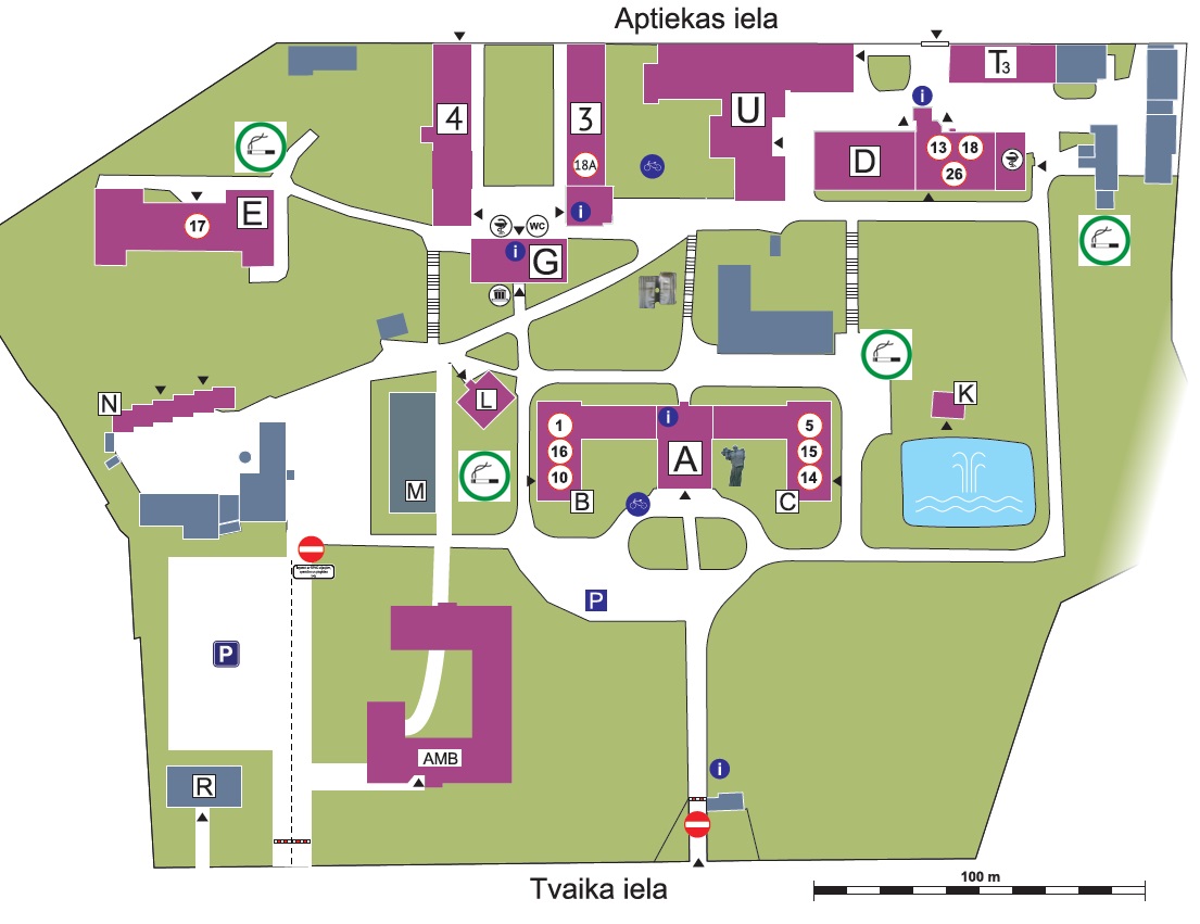 Smēķēt Nacionālā psihiskās veselības centra teritorijā Tvaika ielā 2 drīkst tikai šajās norādītājās vietās: